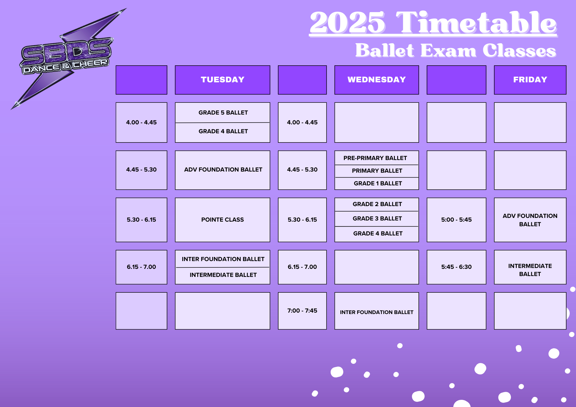 2025 BALLET EXAM CLASSES