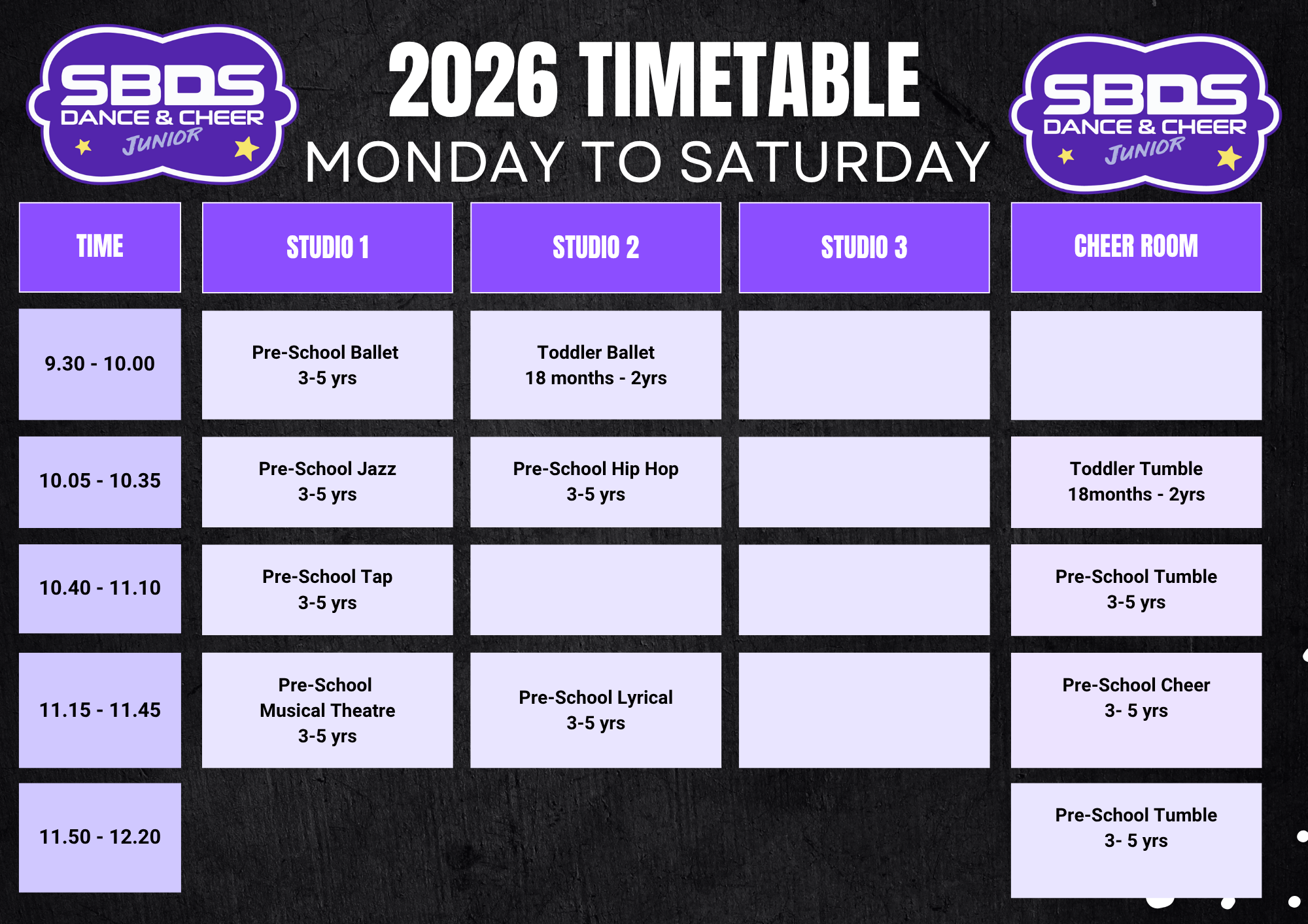 (PRESCHOOL & TODDLER) CLASSES These classes run every morning Monday through to and including Saturday