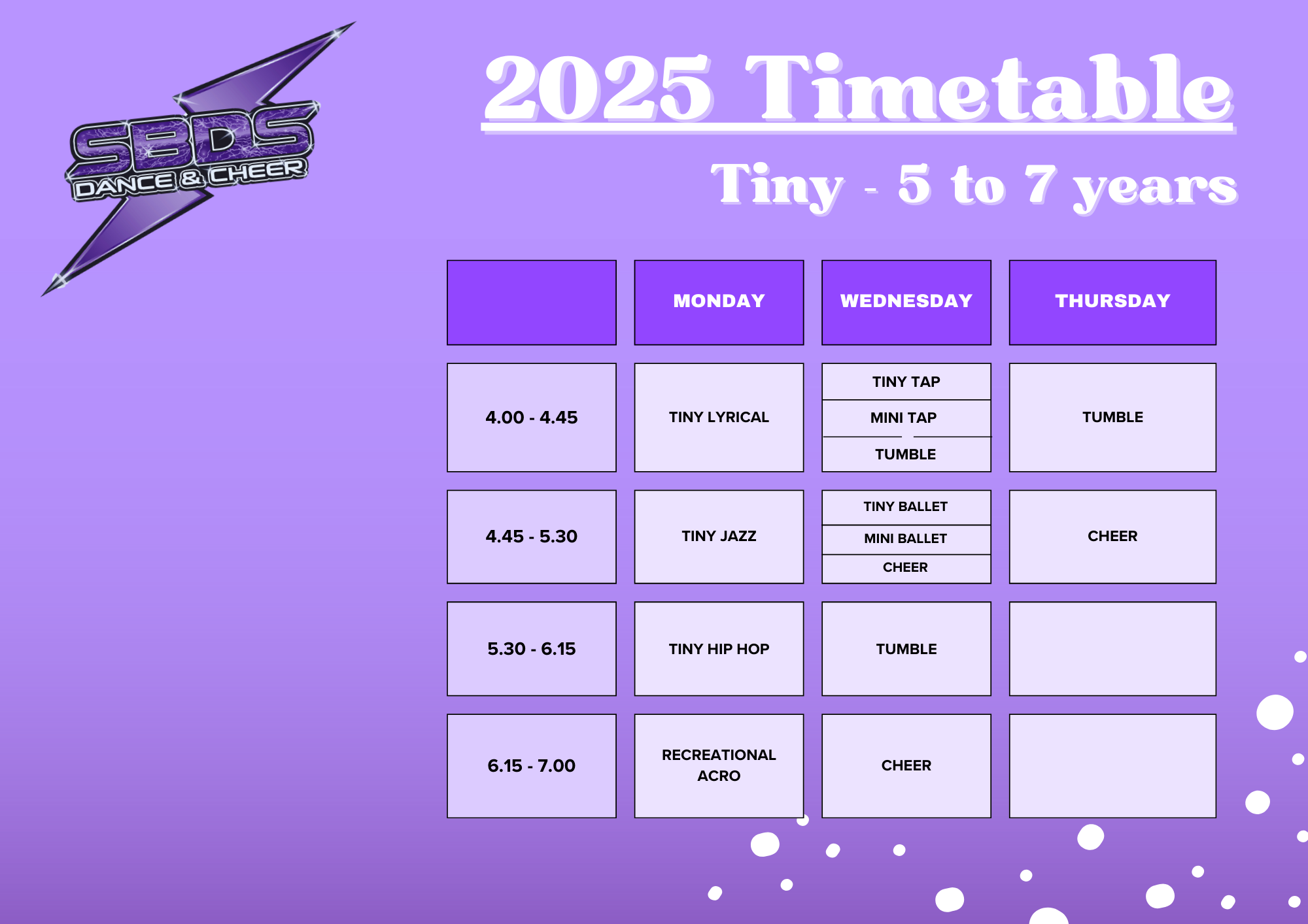 2025 TINY (5-7 YRS) CLASSES
